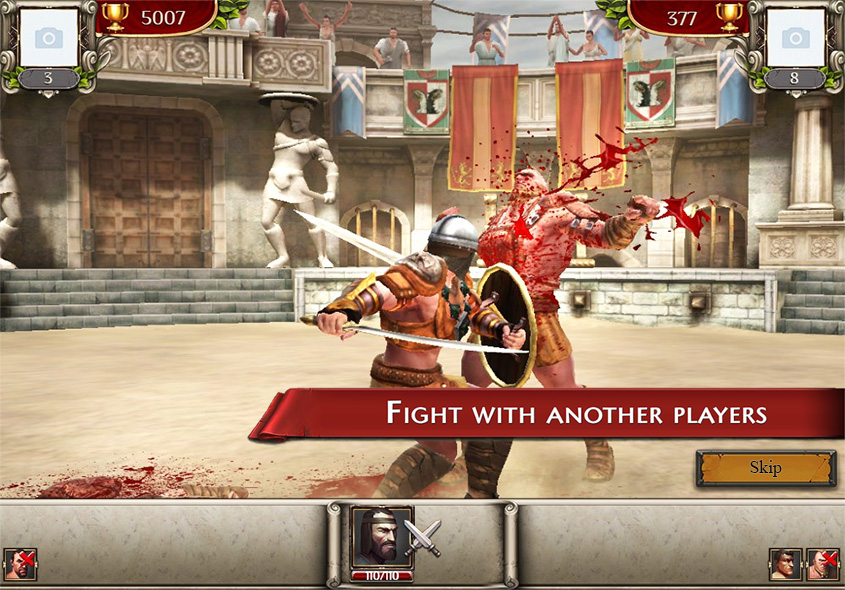 Starting with a small school of gladiators, build your power and influence. Hire the best fighters, train them continuously, hone their special skills. Get weapons in battles, improve, create new ones. Build your own unique development strategy.